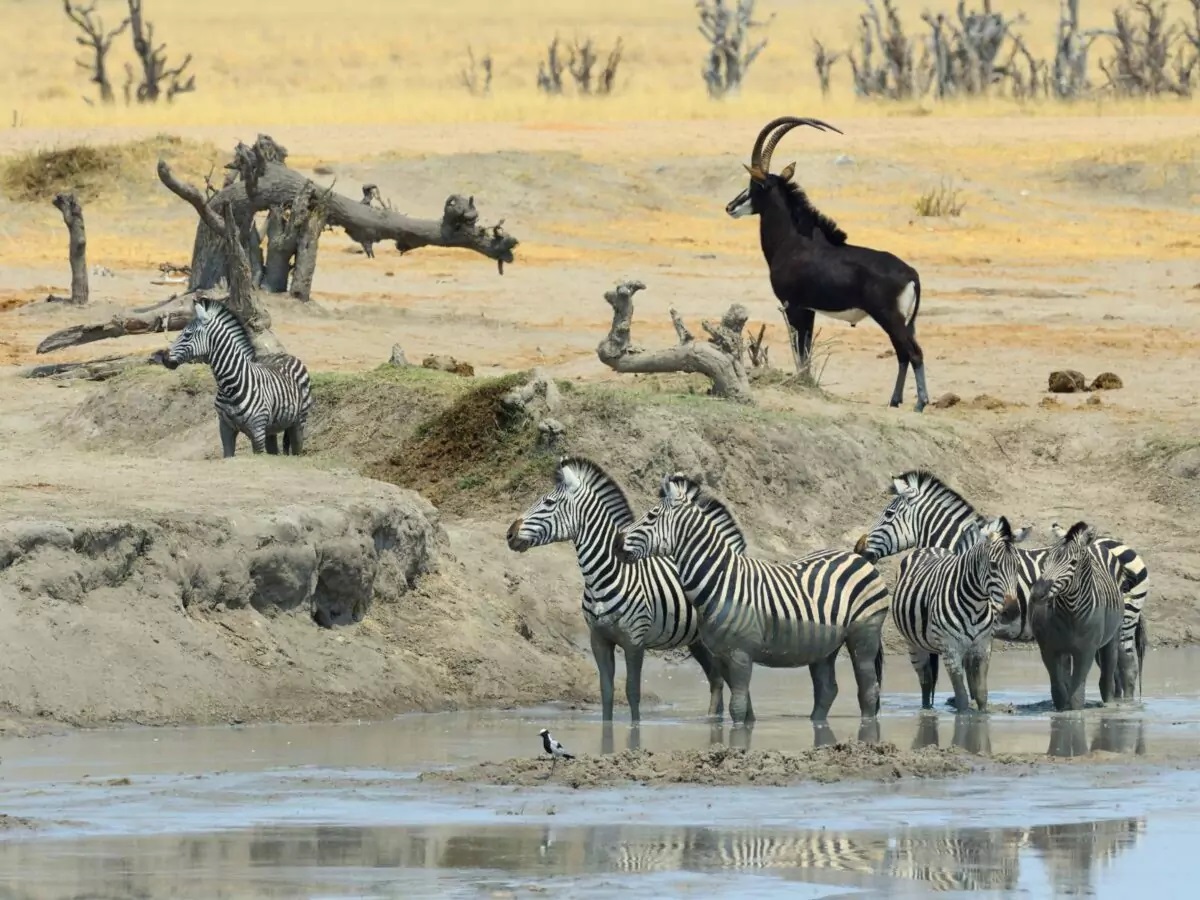 es el parque más grande y popular de Zimbabwe. Ofrece una excelente observación de la vida silvestre y se pueden ver la mayoría de los grandes animales de safari, incluidos los Cinco Grandes. Hwange es más conocido por la impresionante concentración de elefantes que son atraídos a los pozos de agua del parque durante la estación seca. Hwange también es conocido por la observación de aves; la mejor época para visitarla es de noviembre a abril, cuando las aves migratorias regresan de Europa y el norte de África.