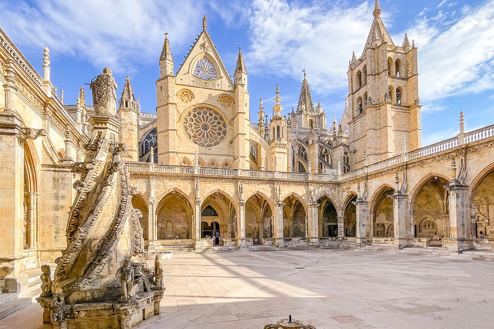 Desayuno. Salida hacia el interior de Castilla y León, llegando a León, ciudad histórica con un notable patrimonio artístico. Tiempo libre para visitar su catedral gótica o pasear por el casco antiguo. Cena y alojamiento.
