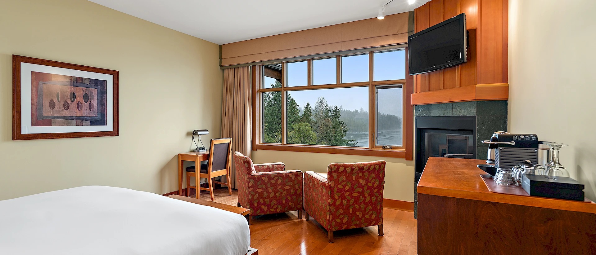 Pensión Completa (con bebidas incluidas, alcohólicas también). El Resort ofrece expediciones para observar los osos grizzly, orcas, leones marinos y delfines, exploración de Glaciares remotos en helicóptero y pesca de salmón con expertos guías. Este es el lugar perfecto para relajarse con clases de yoga y un exclusivo spa con masajes y piscinas de aguas minerales con vistas al Océano Pacífico. El Resort cuenta con acceso gratuito a las siguientes instalaciones y actividades: campos de tenis durante todo el año, piscina exterior, jacuzzi, uso de bicicletas de montaña, lecciones de arquería con equipo incluido y acceso a dos estanques para Fly-fishing de trucha arcoíris con todo el equipo. Las habitaciones cuentan con minibar incluido, chimenea, tina de baño, TV satelital, albornoz y pantuflas. Todas las comidas y las bebidas están incluidas durante su estadía. Alojamiento