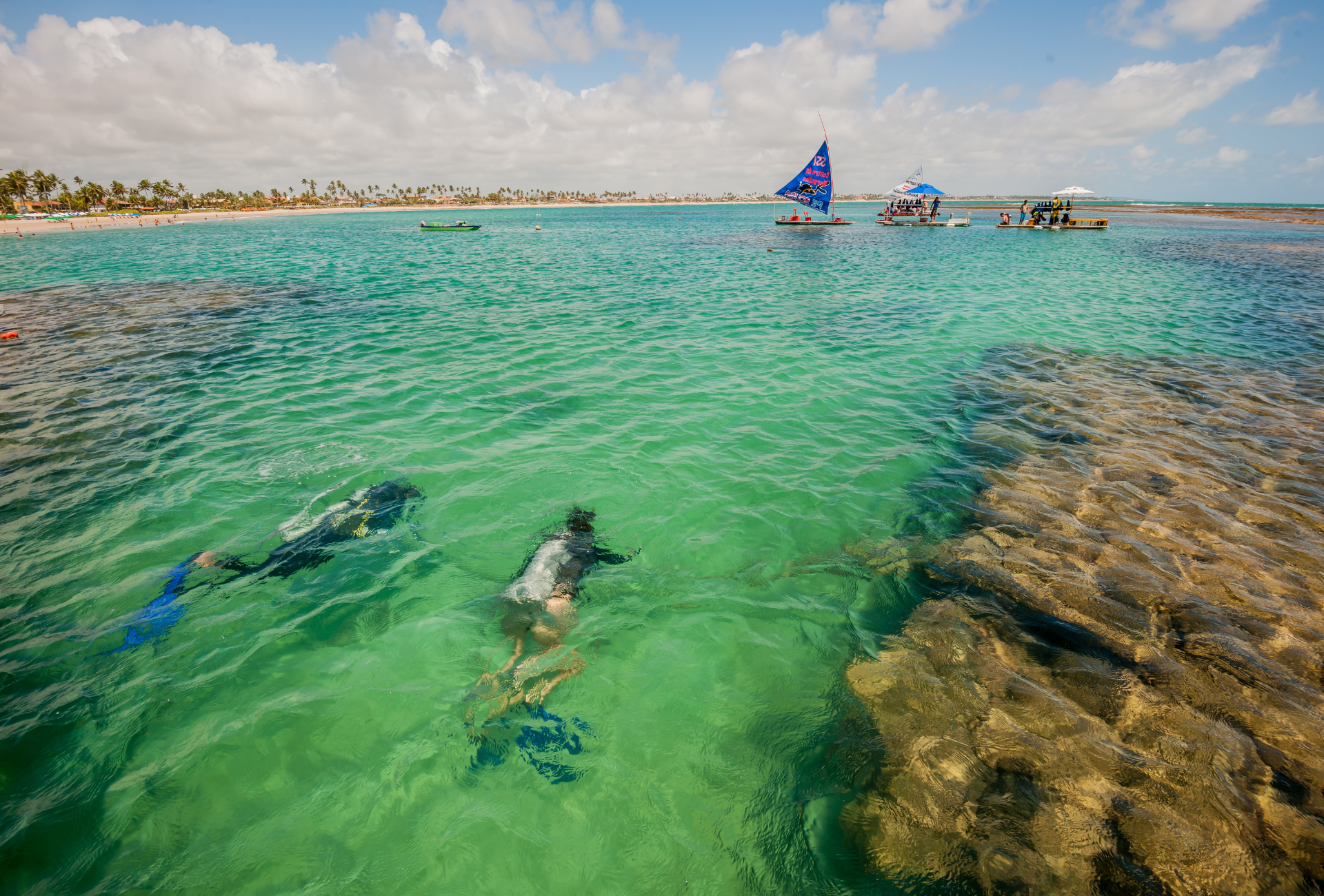 La naturaleza creó los paisajes, el mar transparente, el río que baña el hermoso manglar y el sol que brilla todo el año. Un paseo ideal para que te diviertas con toda la familia. La playa de Maragogi está ubicada en nuestro estado vecino, Alagoas, sirviendo como puerta de entrada al mismo. Queda a unas dos horas de la capital pernambucana y a aproximadamente una hora y media de Porto de Galinhas. Sus playas tienen un mar tranquilo, arenas blancas y densos cocoteros, destacando las de Barra Grande, Burgalhau, Peroba y São Bento. El paseo a las galés (piscinas naturales) es famoso, donde a 6 km de la costa es posible observar el Área de Protección Ambiental que alberga los arrecifes de coral; sin embargo, solo puede realizarse cuando la marea está por debajo de 0,5 m. Paseo opcional en catamarán, no incluido, hasta las piscinas naturales, dependiendo de la marea.